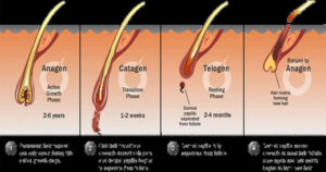 • Anagen phase: It is the healthy growth phase of hair. About 80-90% of hair is in the anagen phase. This phase can last up to five years, with an average of three  years for each hair strand.